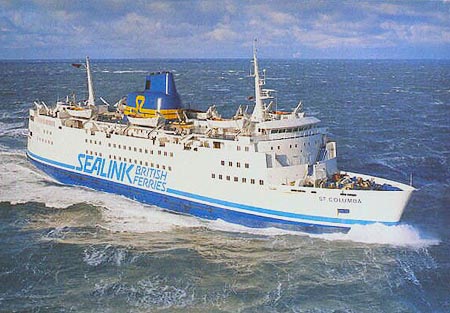 The Car Ferry MV St. Columba was built in Denmark and commenced operations on the Holyhead to Dun Laoghaire route in May 1977. At 7,836 tons she was then the largest Sealink ship on the Irish Sea. She could carry up to 2,400 passengers and 335 cars or 36 HGV’s, or a mixture of both. A popular ship, she was well liked by both passengers and crew alike.