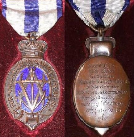 The Albert Medal (AM) was instituted in 1866 and awarded for saving life at sea. Before being combined with the Edward Medal in 1971 to become the equivalent of the George Cross, only 216 bronze Albert Medals had been awarded. Morris Richard Ellis of Holyhead was awarded his postumously. It was presented to his family by Queen Elizabeth II at an investiture at Buckingham Palace on 27 February 1952.