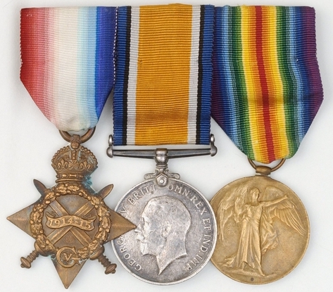 The other medal was awarded to Private John Elderkin of the Army Veterinary Corps (AVC). Private Elderkin was born at Oundle, Northamptonshire on 11th December 1867. He married Maria Elsie Amondsen on 1st September 1892 at Southwark, London. By 1901 they had two children and were living at Camberwell, London. He was then employed as a Carman. Two further children were born by 1911. On 26th August 1914, less than 3 weeks after the commencement of WW1, he volunteered at London to join the Northamptonshire Regiment. He gave his age as 29 although he was actually 46. After 42 days service he was discharged as being over age.